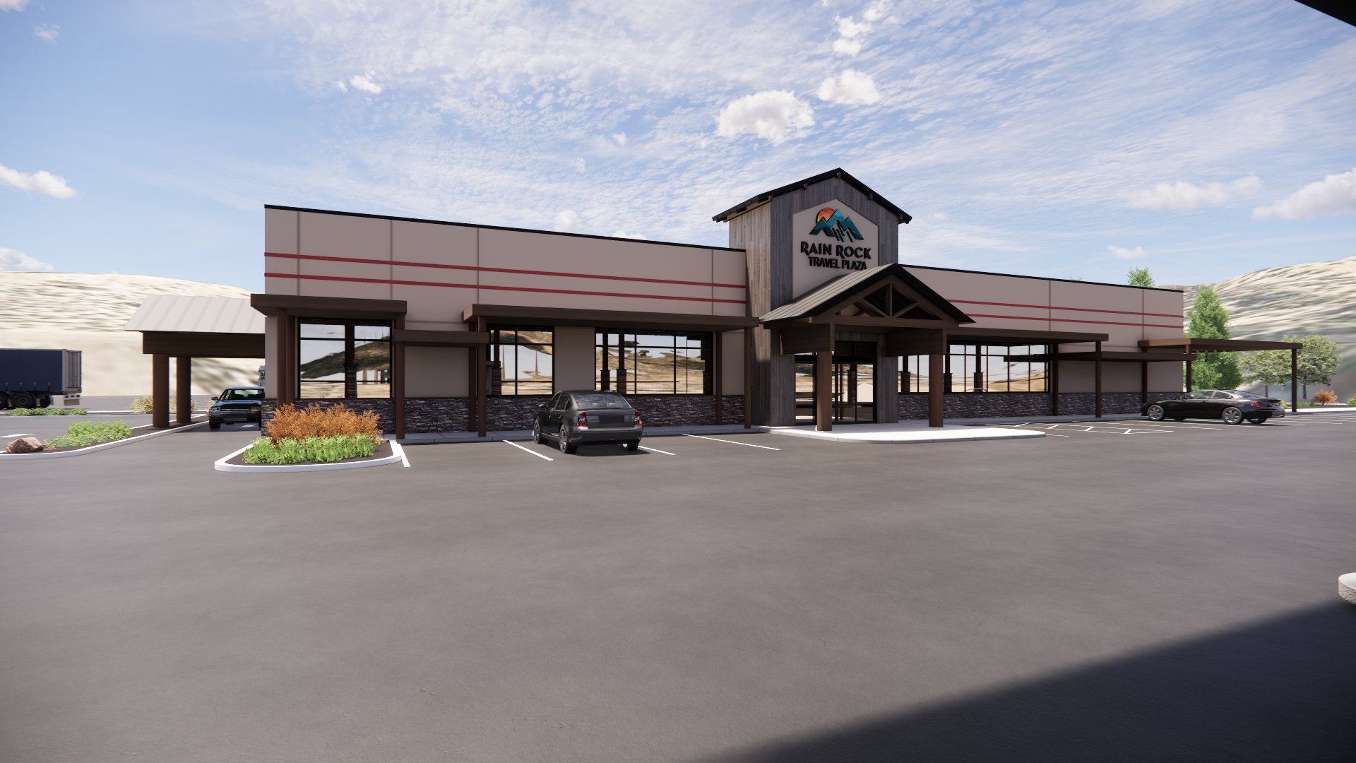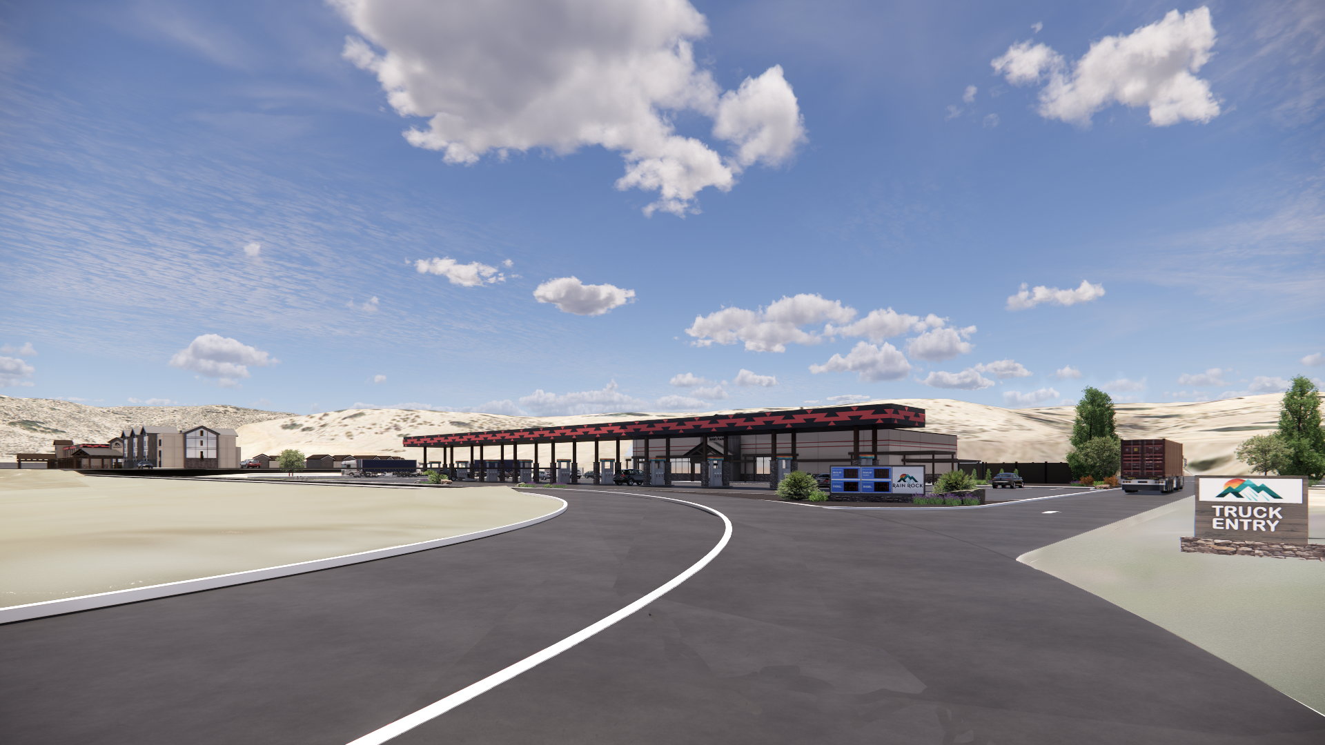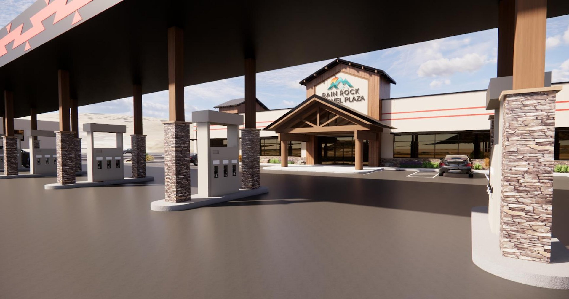 The project entails the design and construction of a new Travel Center fueling station located in Yreka, California. The site is approximately 5-6 acres of Karuk Tribe Trust land, just South of the Rain Rock Casino Resort & Hotel. The fueling station will provide up to 20 passenger fueling positions and 5 high speed diesel fueling lanes. The project is anticipated to utilize underground fuel storage tanks, designed and installed in compliance with relevant EPA requirements. Approximately 50 passenger parking stalls and 15-20 truck parking stalls are anticipated on the site and EV charging positions will be provided. The Travel Center is expected to be a single building of approximately 10,000 square feet and is anticipated to be constructed of structural steel with metal stud framing. Exterior materials are anticipated to include exterior insulation and finish system (EFIS), applied stone veneer, exterior tile, storefront glazing, and heavy timber framing. The building will include a convenience store with typical retail offerings (hot and cold food items, reach in beverage coolers, snacks & convenience items, etc.), a fountain beverage station, quick serve food venue, restrooms, and trucker amenities that may consist of a lounge, laundry area, and showers. Approximately 10 restroom stalls are anticipated in the facility, along with 4-5 private shower stalls.